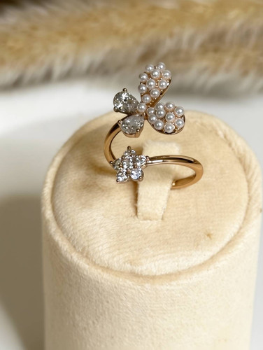 انگشتر زنانه ژوپینگ مدل D369 مدل مروارید و پروانه