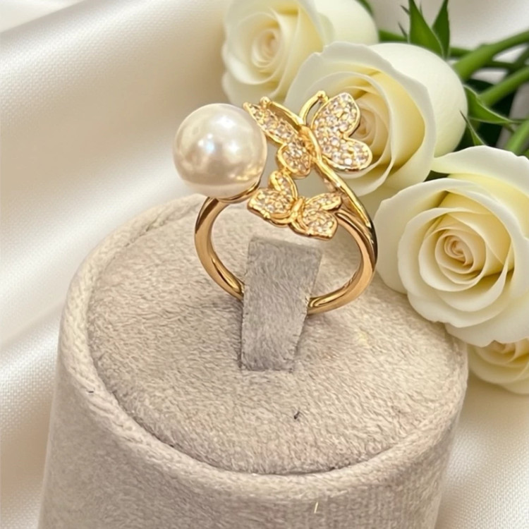 انگشتر زنانه ژوپینگ مدل D369 مدل مروارید و پروانه