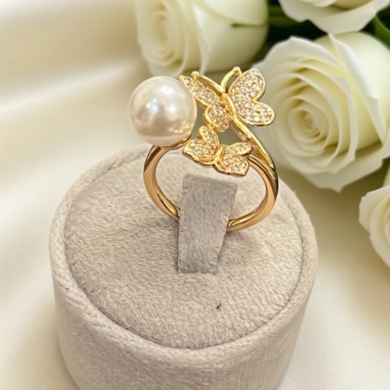 انگشتر زنانه ژوپینگ مدل D369 مدل مروارید و پروانه