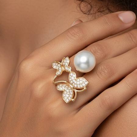 انگشتر زنانه ژوپینگ مدل پروانه نگیندار و مروارید یکی از زیباترین و ظریفترین اکسسوریهای زنانه است که ترکیبی از ظرافت هنری، درخشش خیرهکننده و طراحی منحصربهفرد را ارائه میدهد. طراحی پروانهای این انگشتر، الهامگرفته از طبیعت و نمادی از آزادی و لطافت است و در کنار مروارید درخشان و نگینهای براق، جلوهای چشمنواز به دستان شما میبخشد.